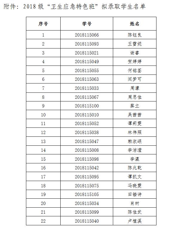 附件:2018级“卫生应急特色班”拟录取学生名单